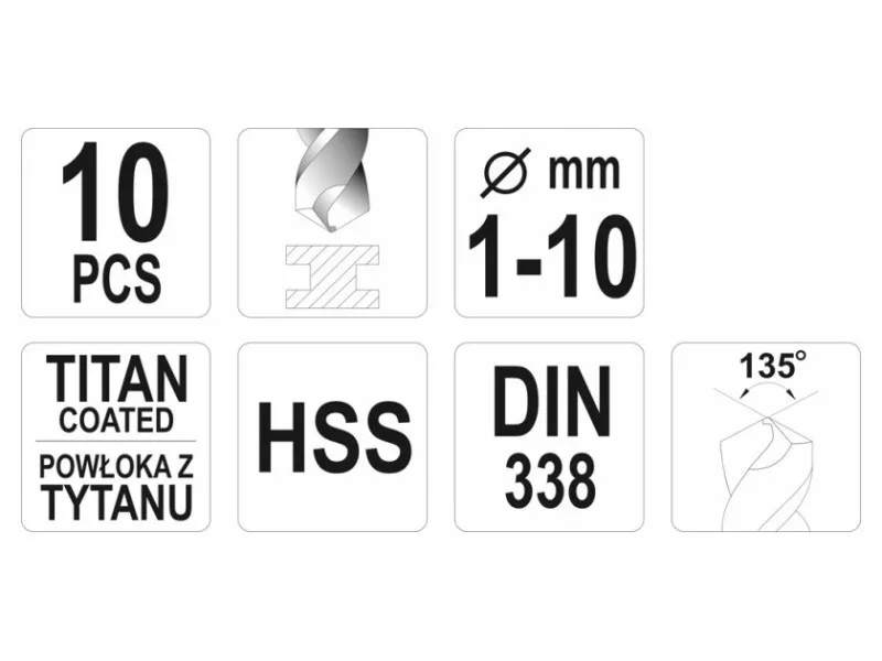 Sanded drills with aggressive blade geometry. Thanks to the titanium nitride coating, they drain the heat very efficiently and do not move when working in hard steel species. The blade attack of 135 & deg; It allows drilling even without prior use. Made according to the DIN 338 standard for professional applications in industry. Prepared for the standard handle & oacute; in drilling drills and key. High pressure resistance also allows the use of column and magnetic drills. Drilling in high -quality steel, including stainless, structural and cold rolled. Drilling without the need for scoring, thanks to the aggressive geometry of the blade. Quick heat dissipation allows you to work without the use of a cooling factor, without causing a drill burning.