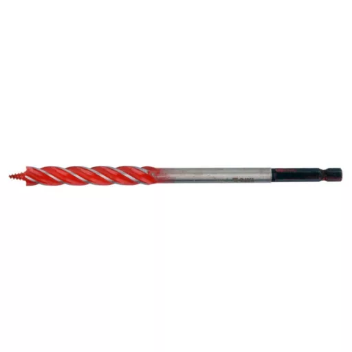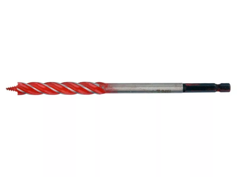 A 4-blade drill bit that leaves even and smooth hole edges and facilitates perpendicular drilling thanks to its special helix design.