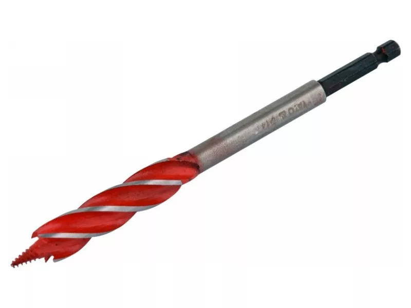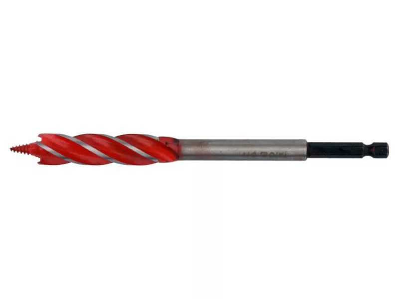 A 4-blade drill bit that leaves even and smooth hole edges and facilitates perpendicular drilling thanks to its special helix design.