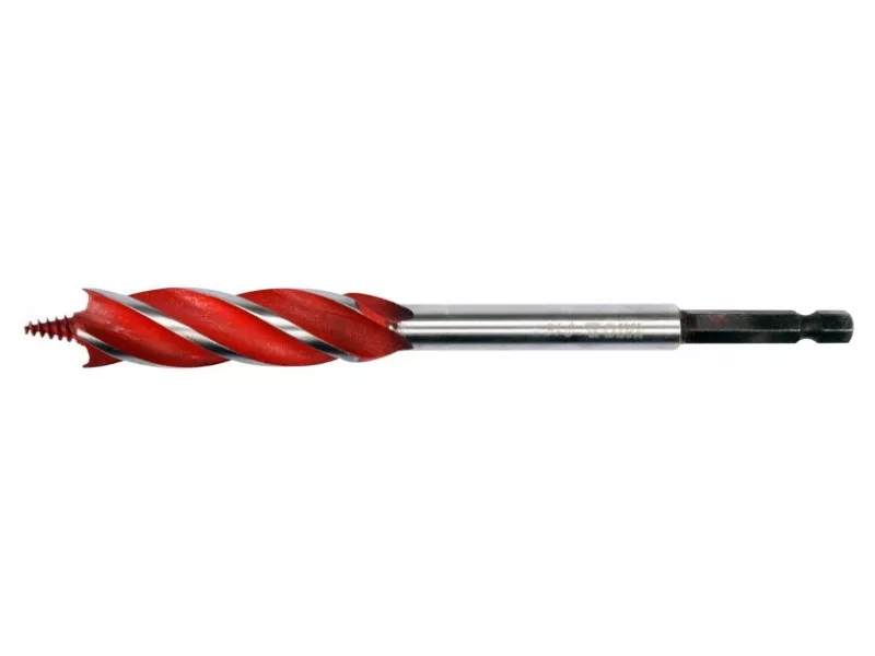 A 4-blade drill bit that leaves even and smooth hole edges and facilitates perpendicular drilling thanks to its special helix design.