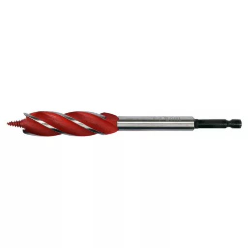 A 4-blade drill bit that leaves even and smooth hole edges and facilitates perpendicular drilling thanks to its special helix design.