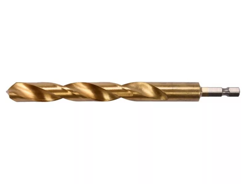 Titanium-coated metal drill bit with hexagonal shank by YATO YT-44776.Made of high-speed HSS steel, titanium-coated. Split point allows drilling without prior scoring. The edges of the drill bit are ground. Point angle of 135 degrees. Quickly dissipate heat when drilling in hard steels without burning the drill bits. Dedicated to professional applications, drilling in high-grade stainless steel, structural steel, and cold-rolled steel.