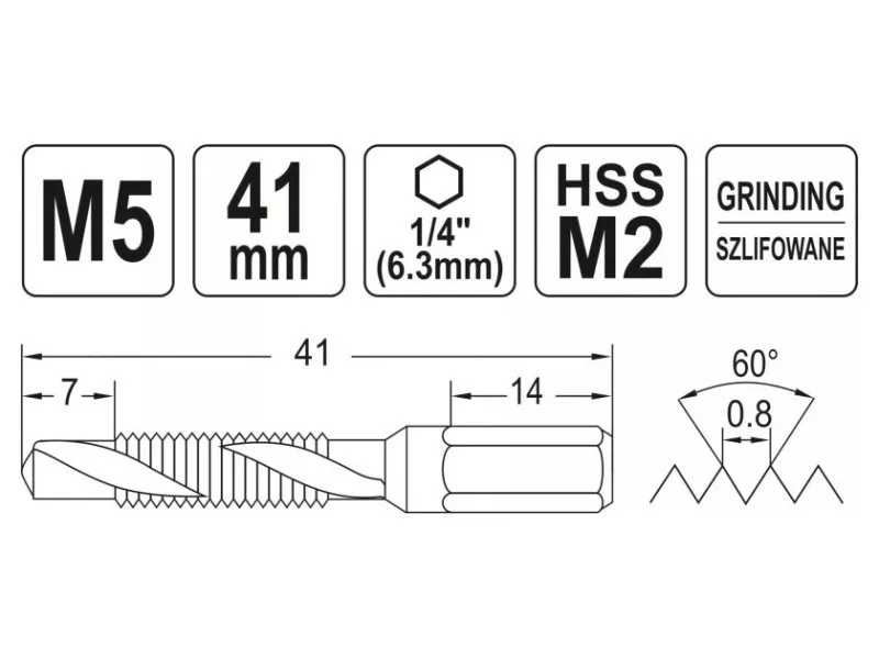 Drill-tapper by Yato YT-44842 Designed for cutting precision metric threads. Used for machine and manual threading.