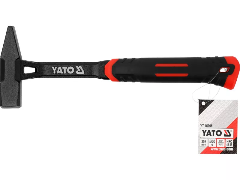 Solid monolithic locksmith hammer with a rectangular striker with a beveled angle. It has excellent parameters for locksmith, assembly, and workshop work. Extremely durable, resistant to impacts and wear even during intensive use in professional workshops. Recommended for users who need a tool with perfect balance between strength and precision.