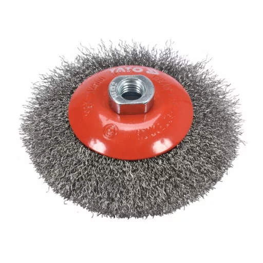Rotary brush designed for cleaning and polishing metal surfaces, paint coatings, as well as rust removal and tool cleaning, using a grinder.