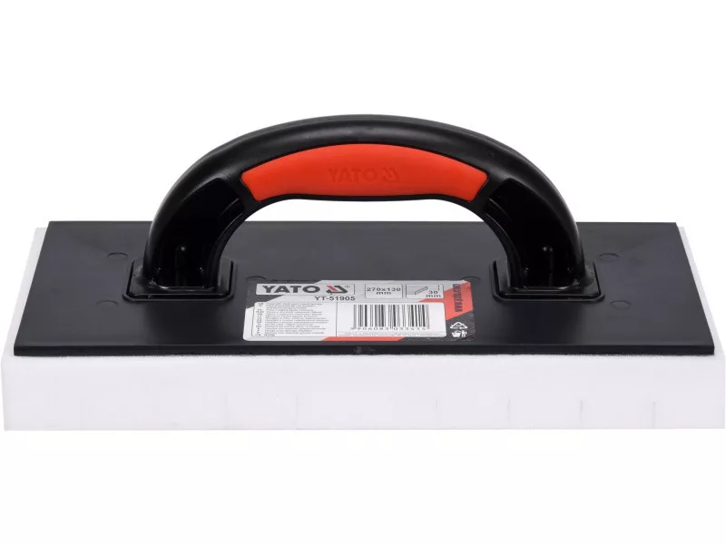 Dense incised sponge trowel designed for cleaning tiles during tiling and renovation work, such as after grouting. The dense incised sponge makes it easier to clean tiles and the sponge itself after the completion of renovation and construction work, while the appropriately shaped handle significantly facilitates the work.