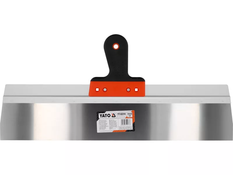 Facade putty is used for all kinds of plastering and finishing works for leveling and collecting gypsum mass. Made of high quality stainless steel are corrosion resistant. Their wide blade with optimal elasticity guarantees precise finishing of the surface of the walls or ceilings. Equipped with an ergonomic two -component handle minimizing the risk of abrasions. & Nbsp; The handle is comfortable in the hand regardless of whether it is used with the right or left hand. & Nbsp; & nbsp; & nbsp; The putty blade is made of stainless steel additionally reinforced with a multi -point fastening of the profile to obtain the perfect tool stiffening. & Nbsp; It is durable, stable and stiff in a natural way, the effect of a smoothly enlisted surface is achieved. Additional reinforcement with multi -point fastening over the length of the profile. & Nbsp; A convenient two-component handle attached with two rivets, a blade permanently installed in the aluminum profile, special holes allow the installation of an articulated handle for the extension: YT-52317 & nbsp; Axial mounting holes spacing-93mm Flexible blade made of stainless steel working width-550mm Total height-250mm height height-90mm thick sheet thick Aluminum profile thick-2mm WAGA-510G