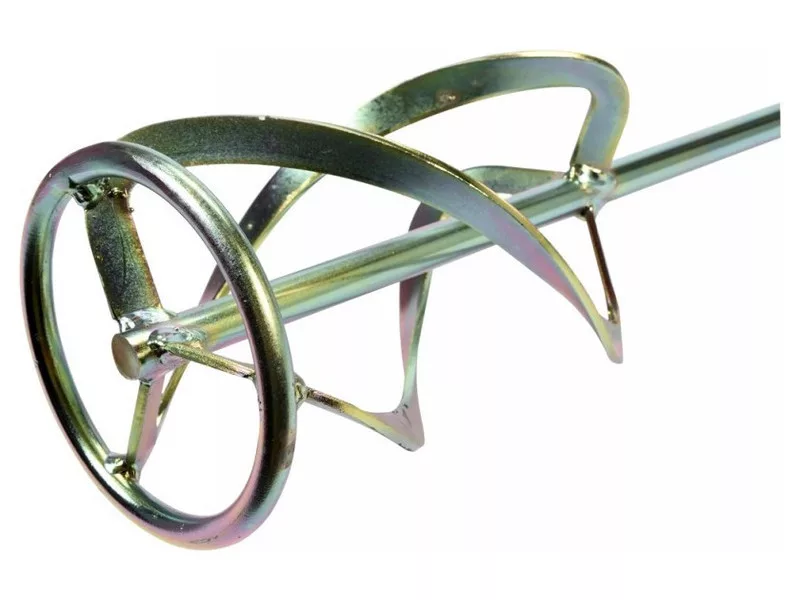 The triple spiral stirrer is used to mix mortars, concrete, plasters and other semi -liquid, sticky materials with sand or gravel filling. He works with mixers or drills. Made of galvanized steel. It has an SDS Plus handle. A special agent profile ensures quick and good disposal of mixed mass. Useful in renovation and construction works.