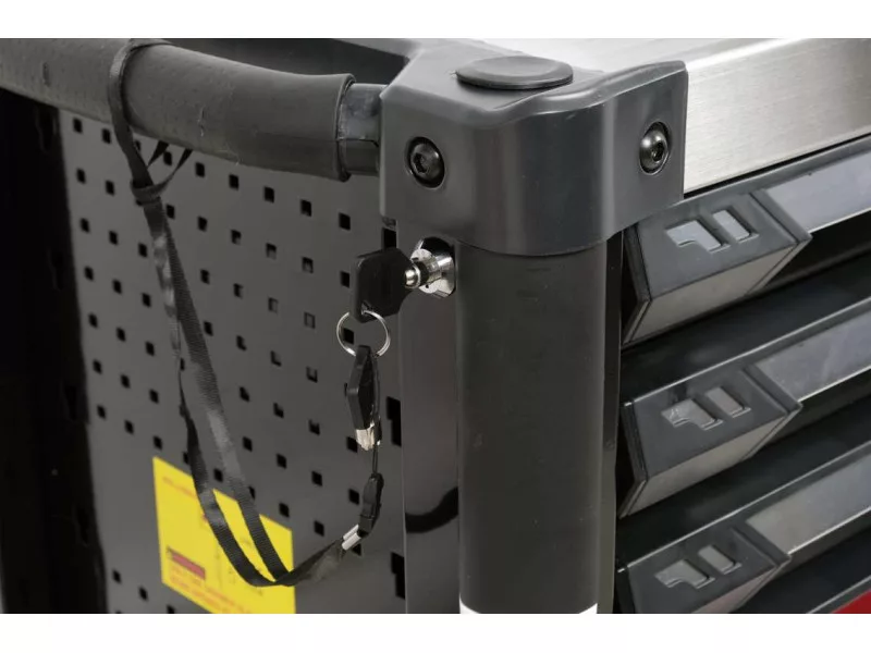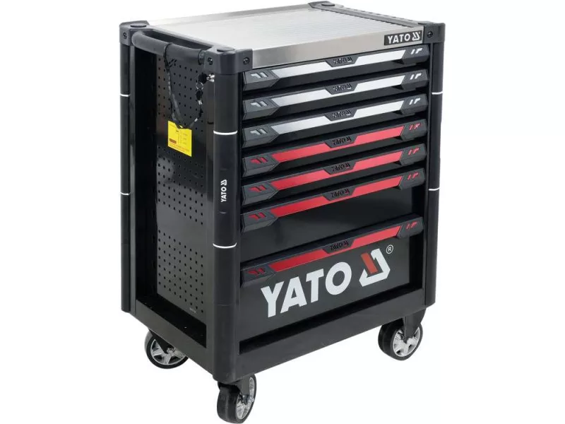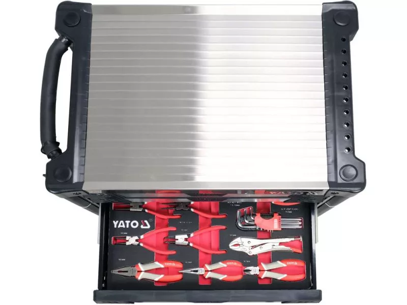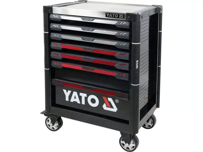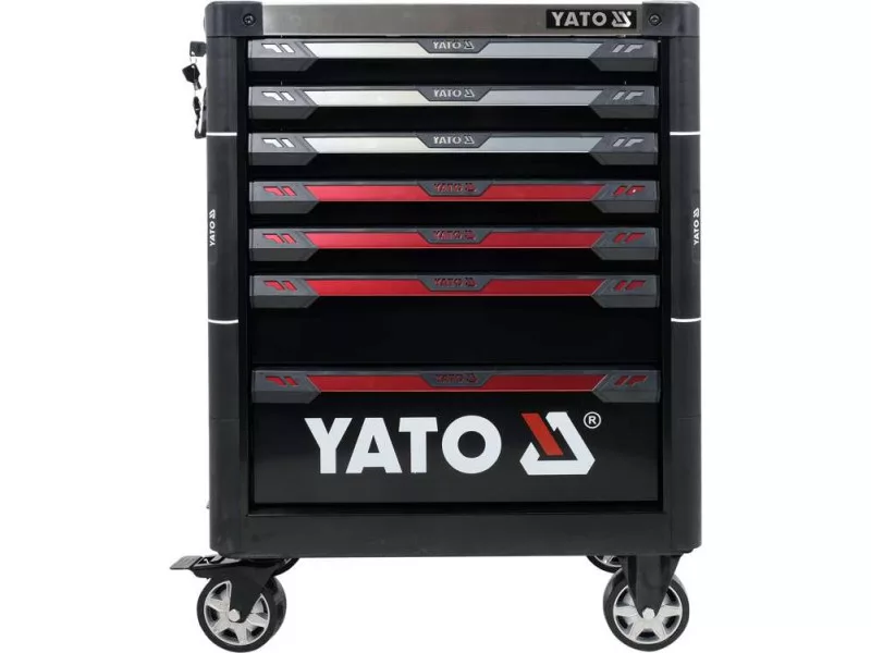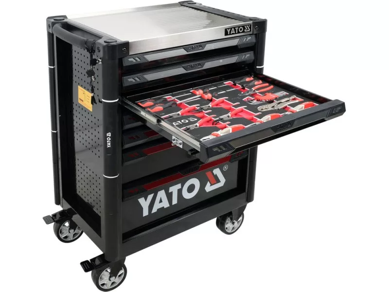 The new service cabinet with tools YT-55308 is a unique construction with a mechanism that prevents opening more than one drawer at a time.