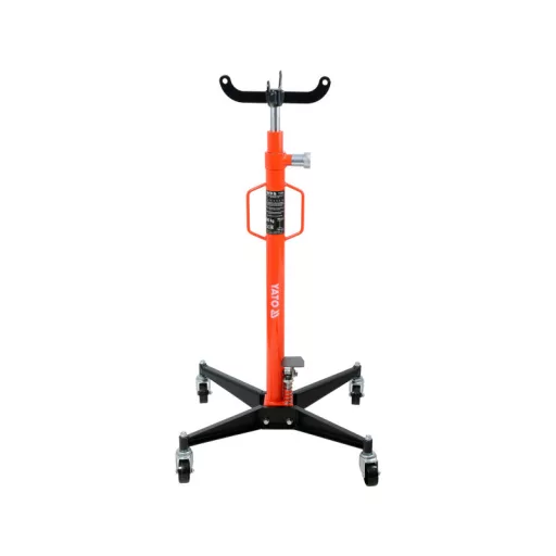 Hydraulic jack equipped with foot pump and precision valve. Designed for working with gearbox, exhaust pipes, engine, suspension, etc. on passenger cars.