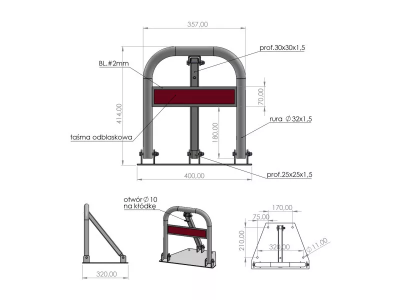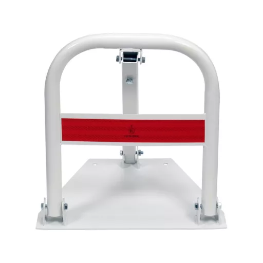 Folding parking lock "horseshoe" for effective protection of areas against unauthorized entry or parking of vehicles. Provides convenience and security in managing access to designated areas. Allows you to temporarily block parking spaces or entry, such as on private property, pedestrian and roadways, green areas, flood embankments, boardwalks.