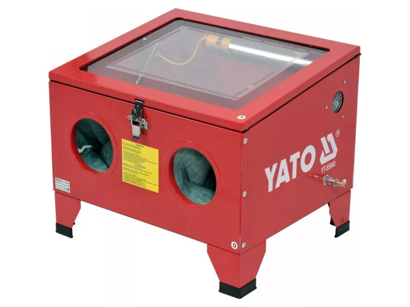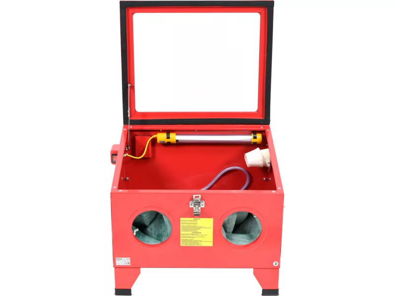 | Set includes | sandblaster, sandblasting gun, a hose sucking abrasive, air connection hose with spigot, nozzle x4 (Ø4, Ø5, Ø6, Ø7 mm), lamp power supply, window protection foil x4, gloves, |