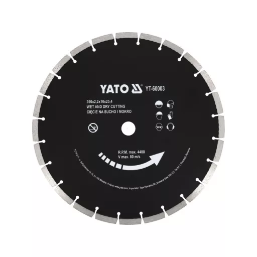 Concrete diamond disc with hot-pressed sgment for high durability. Rós even distribution of diamond granules allows cutting from the góry of the segment to its base. The cobalt in the segment has a high hardness thatóra ensures the durability of the disc.