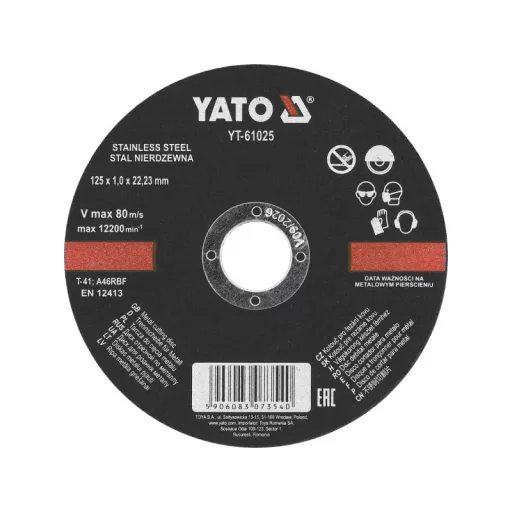 Corundum steel cutting wheel. Designed for cutting hard and mild steel, cast iron, cast steel, aluminum in the form of barsós, sectionsós, pipes, plates, thin profiles and sheets, and for cross-cutting metal bars and wiresós.