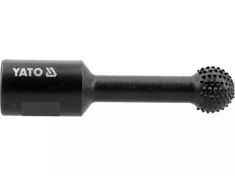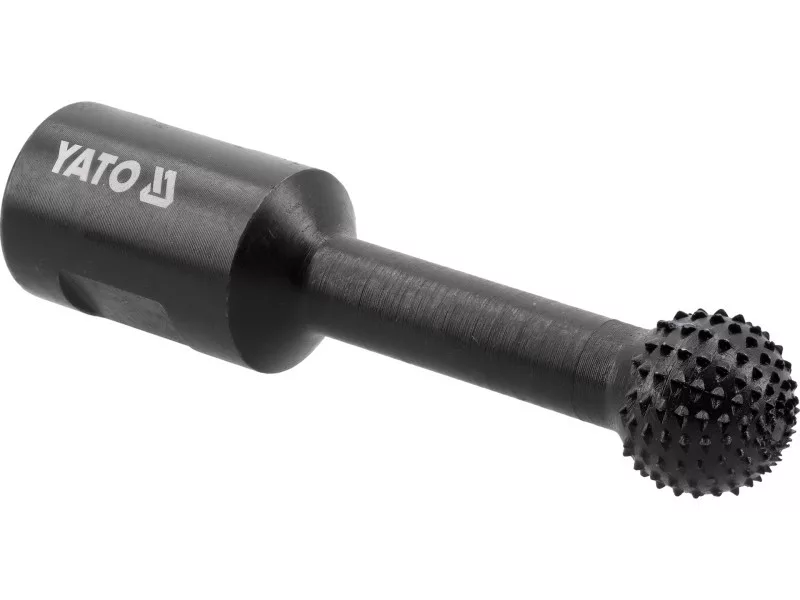 Ball rasp made of blackened carbon steel. It will find use in woodworking, enlarging holes when installing door locks, fitting carpentry joints and chamfering edges.