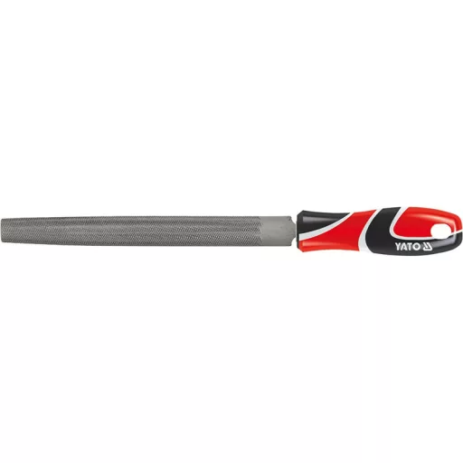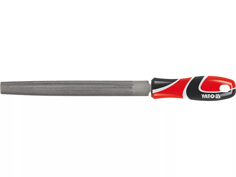 Semi-circular , tapered, double-cut metal file 200 mm with a three-component handle by Yato.