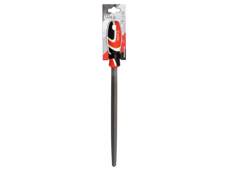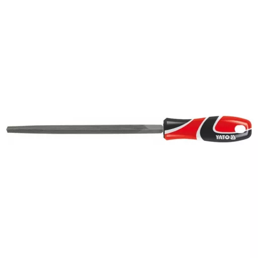 Triangular metal file , tapered, once cut, 250 mm, with a three-component handle by Yato.