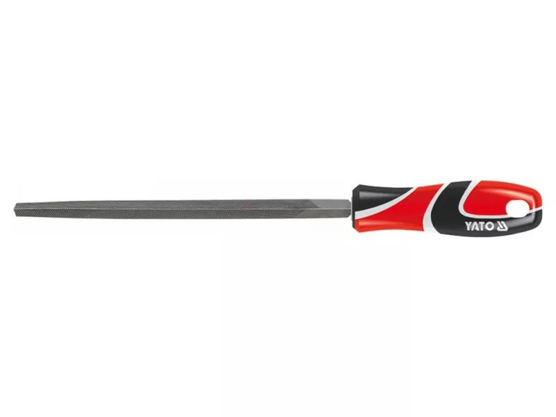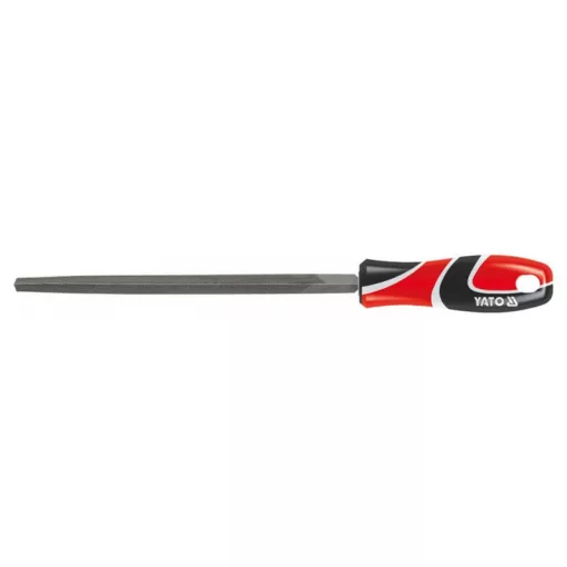 Triangular profile file, tapered, three-cut, 250 mm, with a three-component handle by Yato.