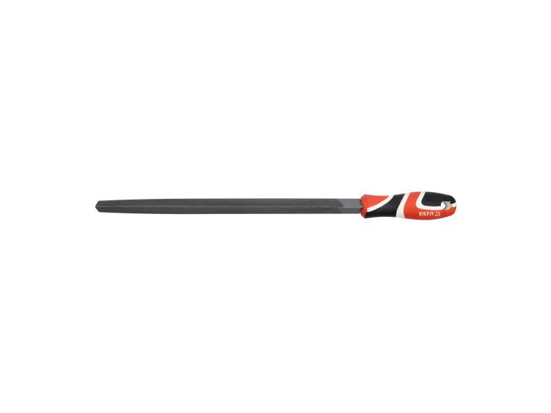 Triangular profile metal file, tapered, three-cut, 300 mm, with a three-component handle by Yato.