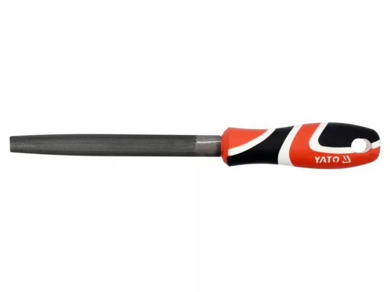 Half-round, tapered, three-cut metal file, 150 mm, with a three-component handle by Yato.