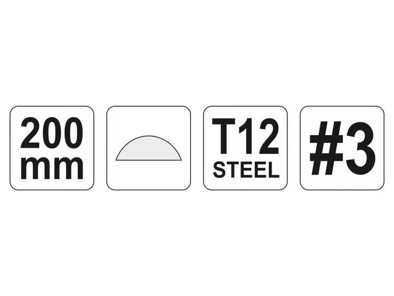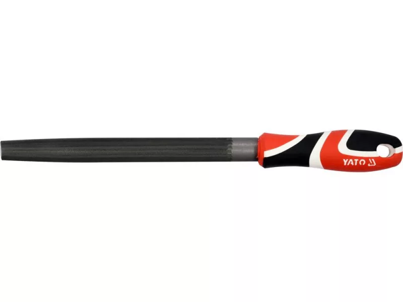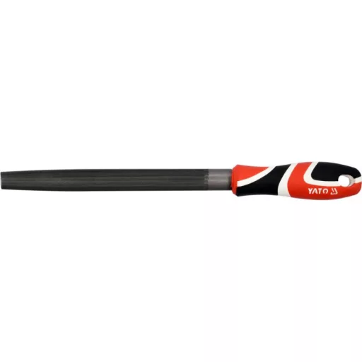 Semi-circular , tapered, three-cut metal file, 200 mm, with a three-component handle by Yato.