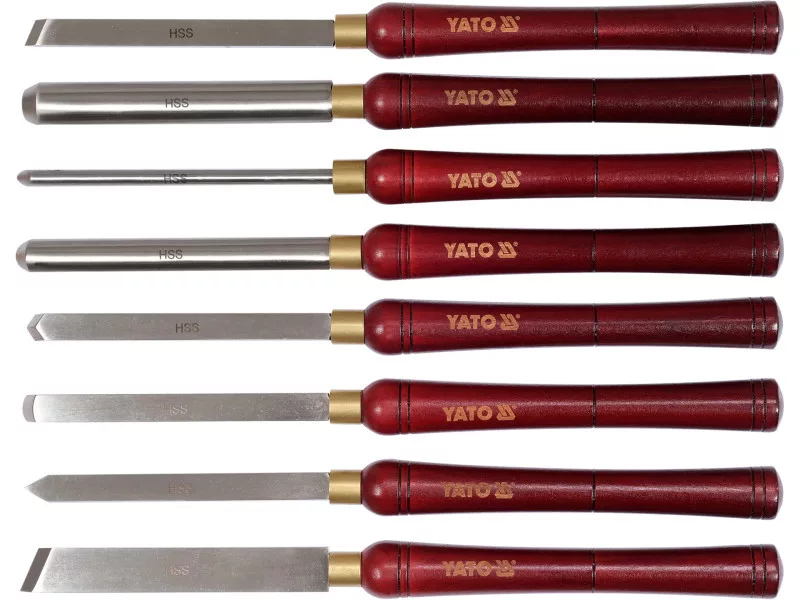 | Set includes | spindle gouging knife x3 (8, 19, 25 mm), round nose scraper with blade (16 mm), inclined chisel with x2 blade (15, 25 mm), scraper with blade (16 mm), |