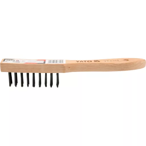 Made of galvanized spring steel wire permanently embedded in a wooden body. Brush profiled to increase cleaning efficiency.