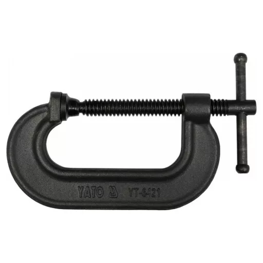 Specialist Crot C. Type C. Made of steel with a symbol 0.45%C, buckle height 75 mm, depth 48 mm. Maximum load of 1950 kg. Surface finish-phosphatled black. Designed for clamping materials for construction and assembly works. Especially needed for welding work or drilling. Strong 75 mm buckle for heavy assembly work.