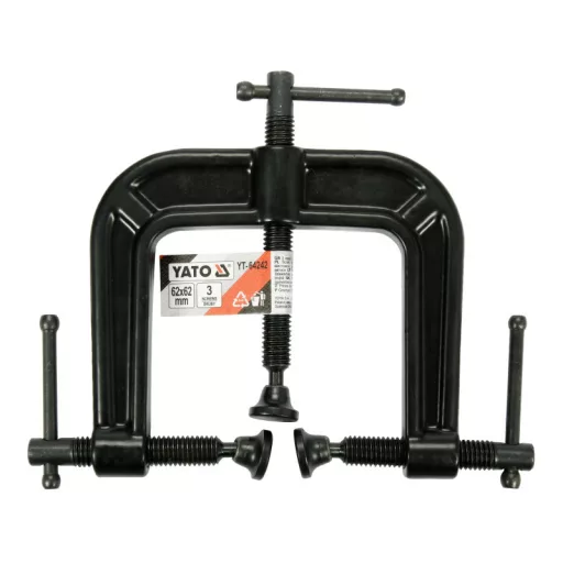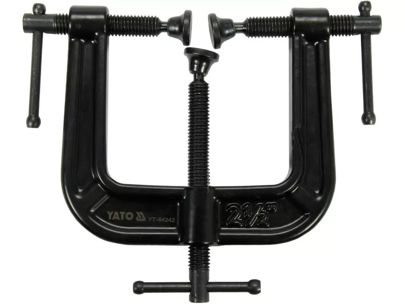 Specialized, indispensable potrójny clamp. The body is made of malleable cast iron, protected against rust with a powder coating. It has three blackened pressure screws made of steel. They allow stable clamping and machining of irregular workpieces.