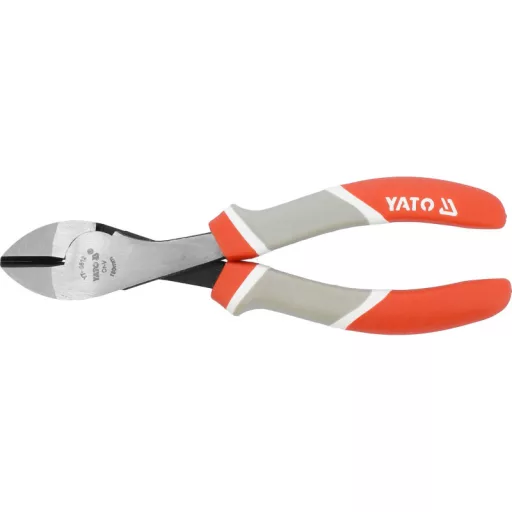 Side cutting pliers with a length of 180 mm by YATO. Handles covered with comfortable plastic three-component pads.