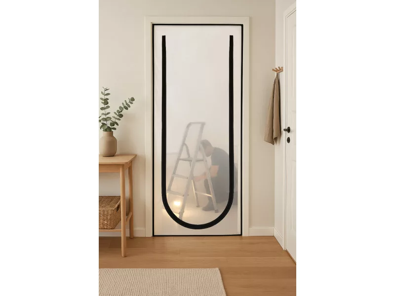 The dust cover of the opening & oacute; in the door made of thick, colorless, transparent PE foil. The opened part has the shape of the letter U and is opened with a sewn -in zipper with a single slider. Fastening of the foil is done with adhesive tape. Dimensions: 220 x 120 cm opening of the opening: 180 x 60 cm. Below the lock (PR & oacute; G; G; the cover does not allow entry, e.g. a wheelbarrow): 15 cm. Above the lock: 20 cmw set 1 set of 1 glue tape with dimensions of 30 mm x 10 m for gluing door openings and protecting rooms during renovation works. It effectively protects the door hole, gluing the edges of the foil to the wall or door frame with the help of a strongly fastening double -sided adhesive tape. The foil can be used many times. Foil with zipper, adhesive tape
