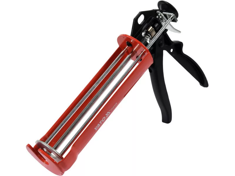Strengthened with a special tube with increased capacity / most often with glue or resins /. It is characterized by a solid performance effective action and good appearance. It has a triple piston rod adapted to squeeze high density masses. Supports tubes measuring 225 x 60 mm. For an effective application of dense masses such as resins or tubes with dimensions of approx. 225 x 60 mm. Dry the piston as much as possible and place the tube in the bed so that the crowds are as close as possible to its DNA. Pressing with sensitivity to the trigger lever, press the piston to the bottom of the tube, causing the mass squeezing through the hole at its end.