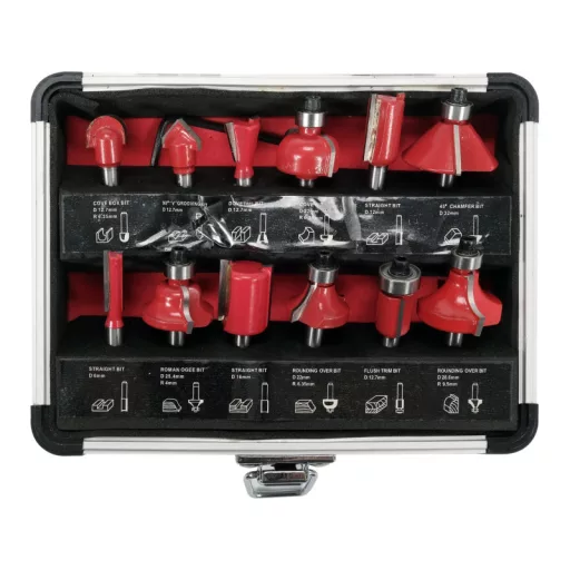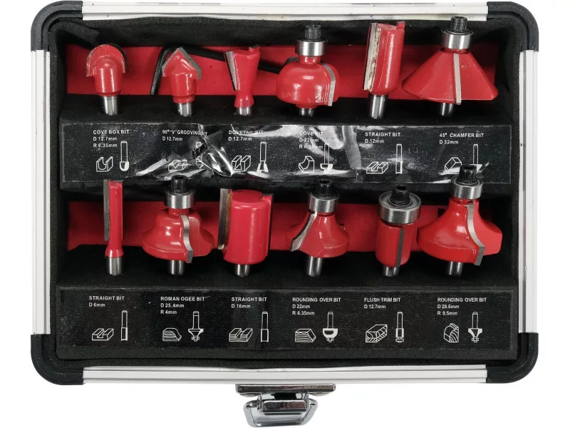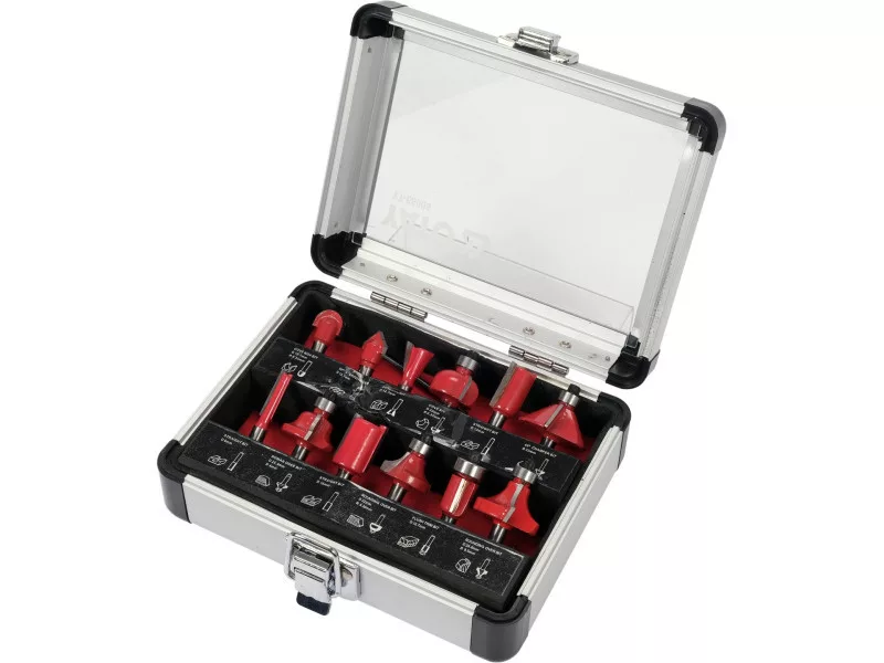 Set of 12 burrs for precision woodworking with router bits