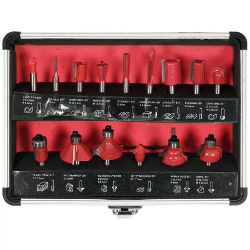 Set of 15 burrs for precision woodworking with router bits
