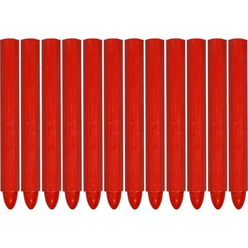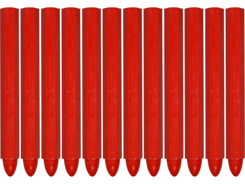 Technical chalk / fat / for marking on metal, wood, stone, concrete, glass, rubber. Red colour. Dimensions approx. 120 x 12 mm. OPK. 12 pcs for marking, writing on various materials, e.g. gum, metals, wood, brick stone, etc. Technical chalk red color opk. 12 pcs