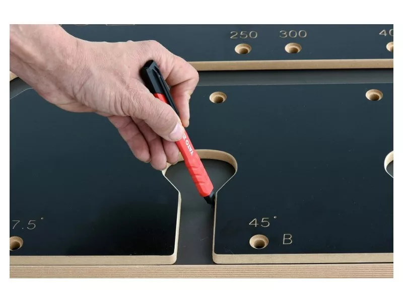 Milling template for milling countertop joints .Made of mdf type laminated board. External dimensions approximately 1000 x 390 x 12 mm.