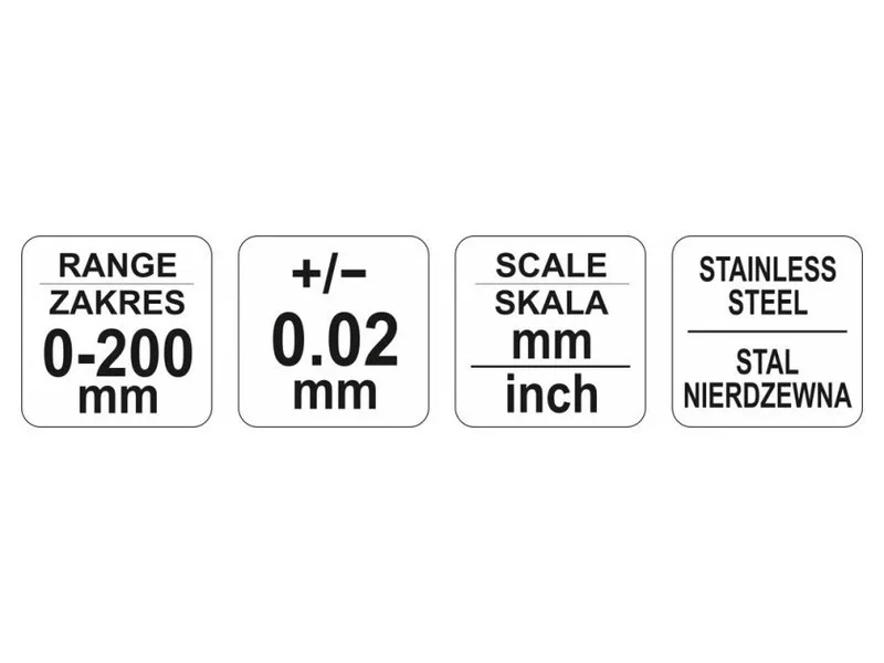 - measuring range from 0 - 200mm / 0 - 8 inches