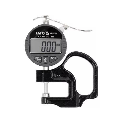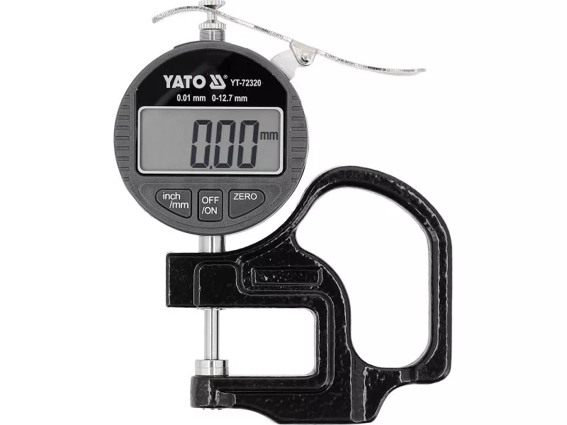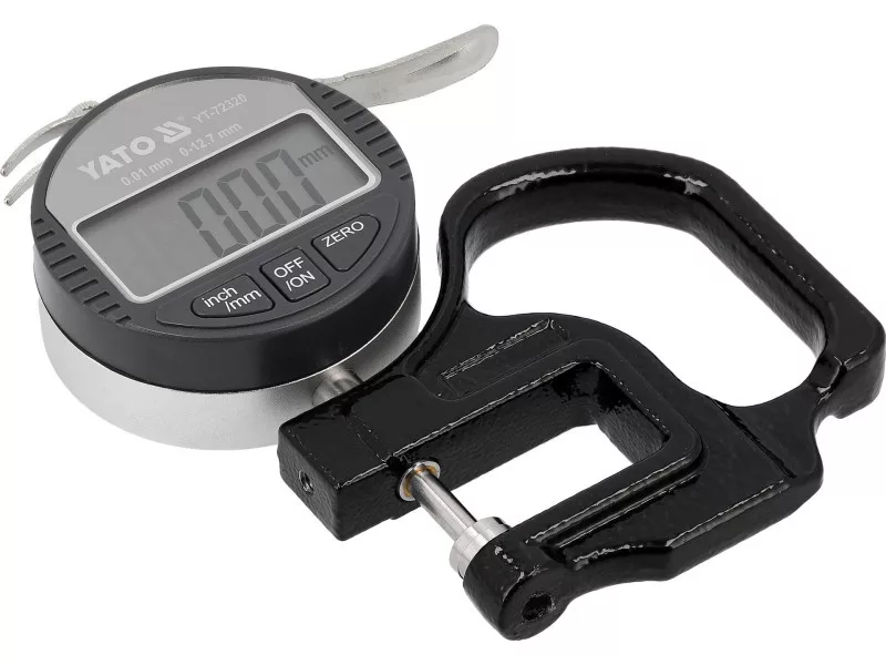 An electronic thickness gauge with an accuracy of ±0.01 mm is a precise measuring tool designed for determining the thickness of various materials, including metal sheets, plates, sheets made of metal, paper, plastics, or glass. It is used in workshops, measurement laboratories, and quality control, where the accuracy and repeatability of measurements are important.