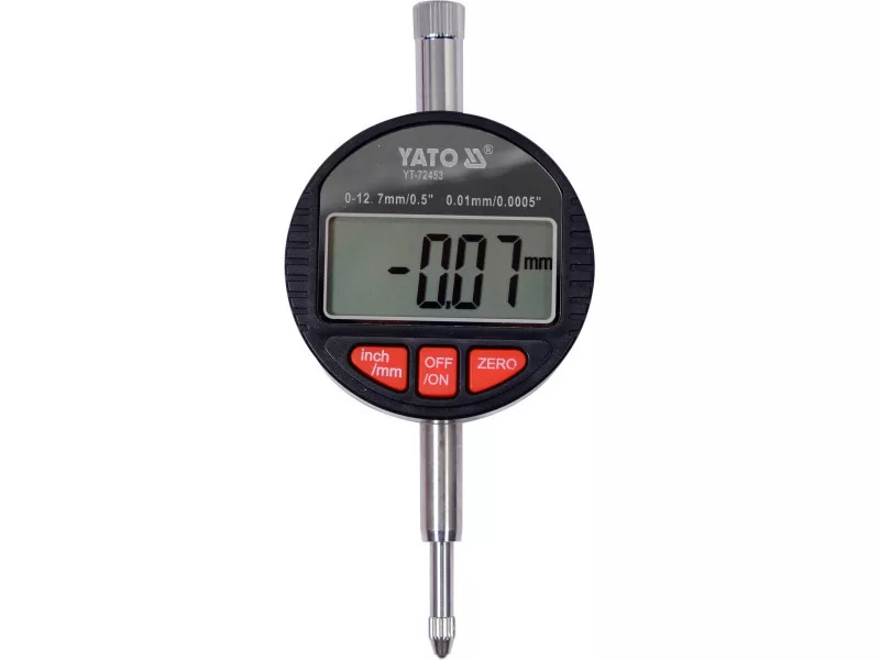 Professional electronic dial sensor YT-72453 is widely used in workshop work and machine inspection. It will be perfect for handling and checking the correctness of the installation of brake discs and all kinds of pulleys or shafts. Thanks to the special magnetic base, YT-72453 can serve as a stable measuring point for checking the runout of rotary componentsós.