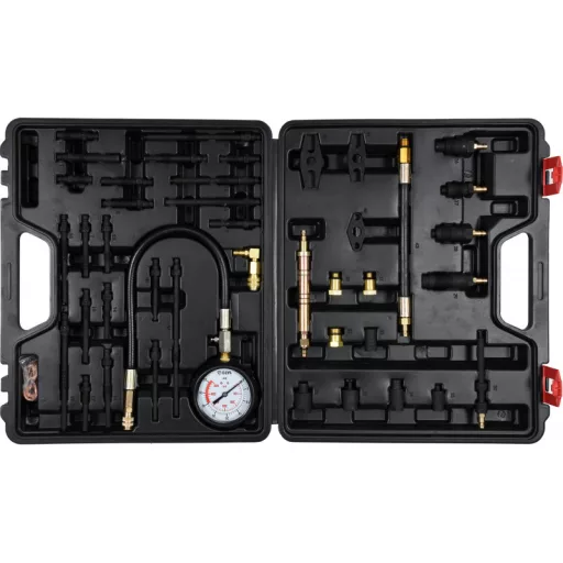 Universal set for measuring compression pressure in both gasoline, and diesel engines. Measurement can be done through glow plugs or through the injector.