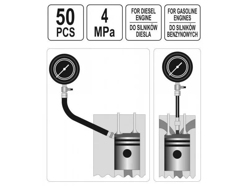 | Application | for measuring compression pressure, for diesel and petrol engines |