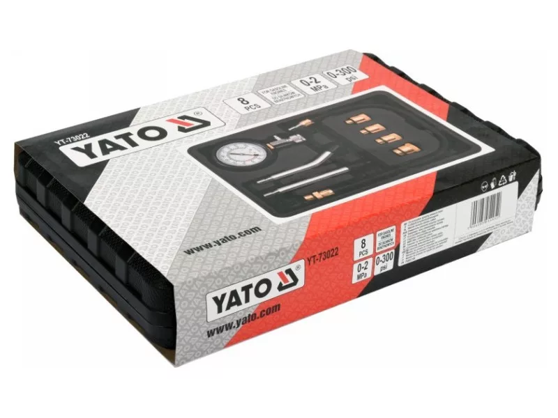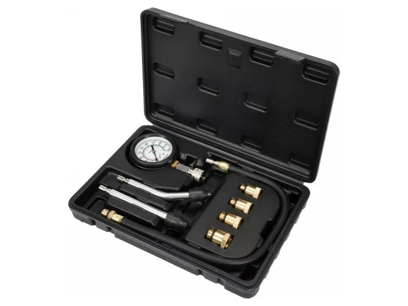 8-part set for measuring compression pressure in gasoline engines. AMA with a scale of 0-300 PSI and 0-2 MPA equipped with ZA & oacute; R4 replaceable brass adapters matching most brands of car & oacute; W2 interchangeable extensions & ndash; simple and bent & ndash; Ended with rubber -elastic rewrite with a length of 500 mmzapacked in a handy suitcase
