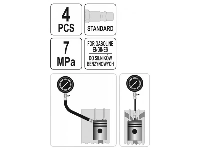 - measuring unit with 100 psi (7 barów) pressure gauge and cylinder leak indicator