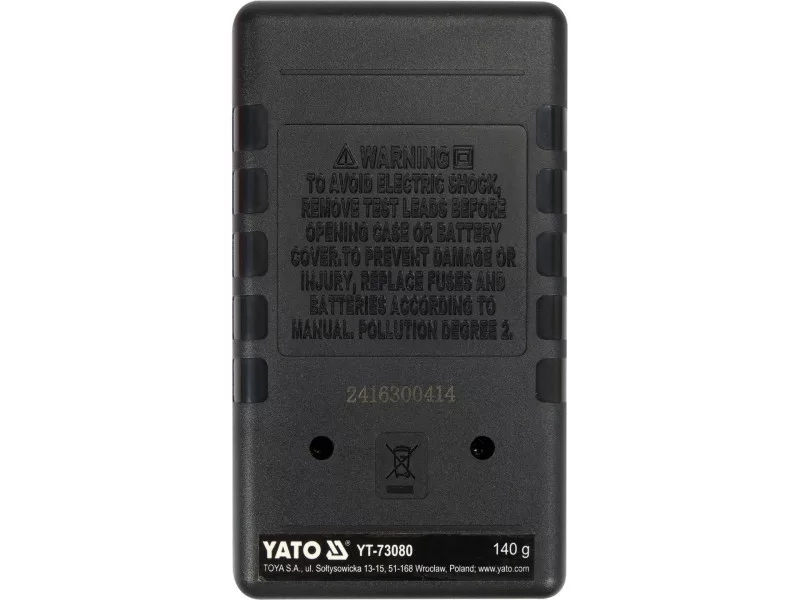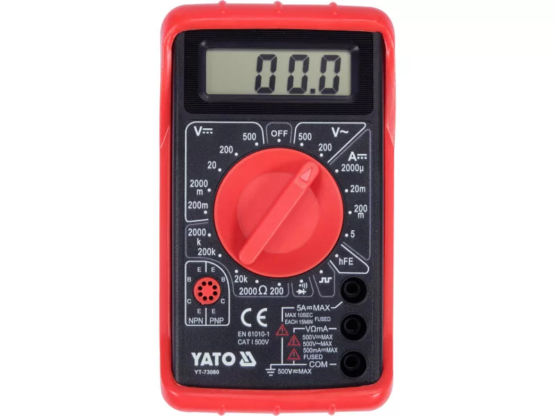 Universal meter YT-73080 with manual range for every measurement allows for basic and advanced electrical measurements. This is a basic model in our offer. An additional protection against mechanical damage is the so-called holster - a rubber cover stretched over the device housing.