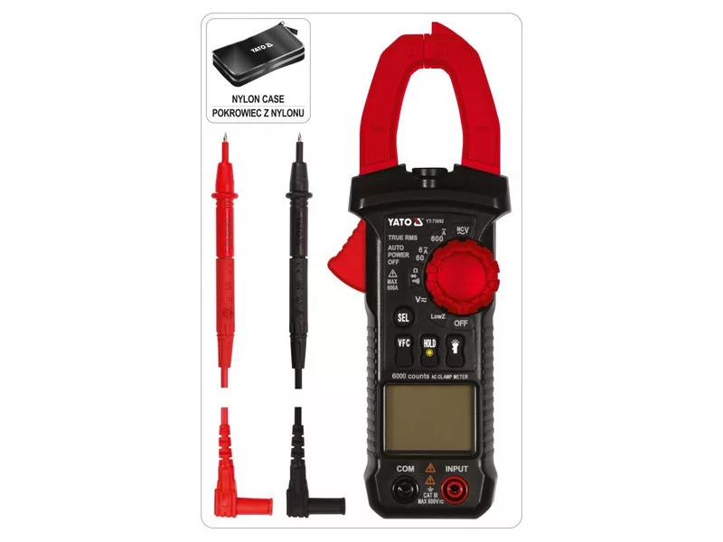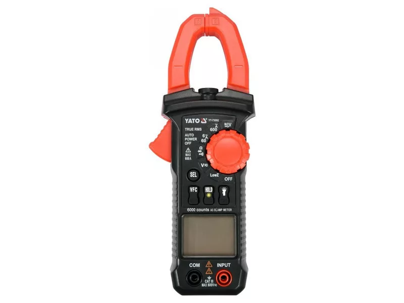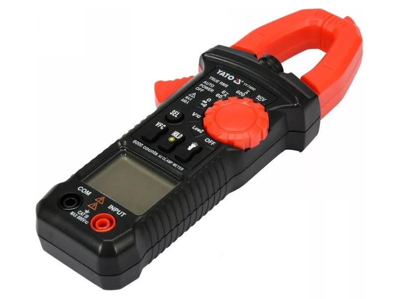 Universal clamp meter YT-73092 with automatic range for most indications allows you to perform basic and advanced electrical measurements. The meter is equipped with measuring clamps, which allow you to measure the AC current in a single wire using the inductive method. The measurement is carried out without disconnecting the circuit or disconnecting it from the power source, and makes it possible to measure a much higher current than conventional electrical meters.