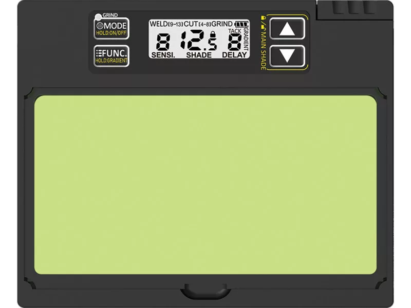 - TEST button allows checking the correct operation of auto-darkening function for each shading level, which helps protect the operator's eyes and health with regular filter function checks