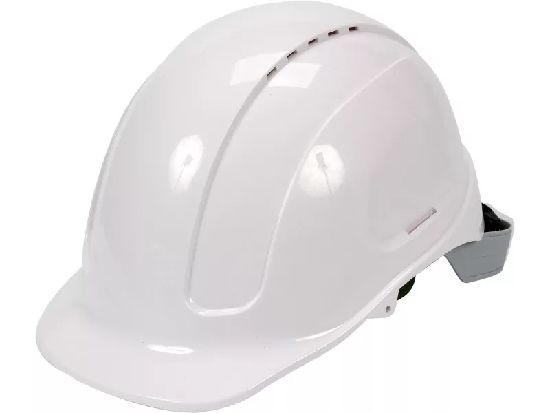 The protective helmet made of durable ABS plastic was designed for the highest comfort of use. Universal size with adjustable in the range of 53 to 64 cm. Special gaps on the sides with a width of 29 mm allow the installation of dedicated anti-brash earmicks, e.g. YT-74624. Elements that increase the comfort of work from polyethylene with a six -point support made of upholstery tape, special material with a sponge and a teach means that the helmet almost does not feel the size of the size adjustment using a bolt with a bolt with a ratchet system allows you to adjust the size directly on the head of the user elastic chin strap with adjustable length adjustment , attached directly to the truss instead of the helmet not only prevents accidental sliding, but also allows the truss to be properly cushioned. Ventilation holes in the helmet shell improve air circulation The use of helmets white helmet - construction manager, construction engineer, supervision inspector, other engineers (e.g. environment) Yellow - a manual worker red helmet - guest, intern, practitioner blue helmet - working at heights, machine operator, electrician, Energetyk Green helmet - OSH employee orange helmet - surveyor, surveyor employee