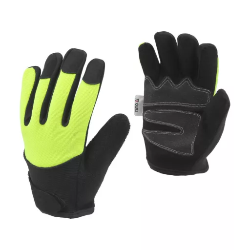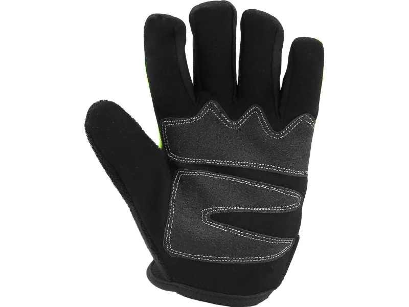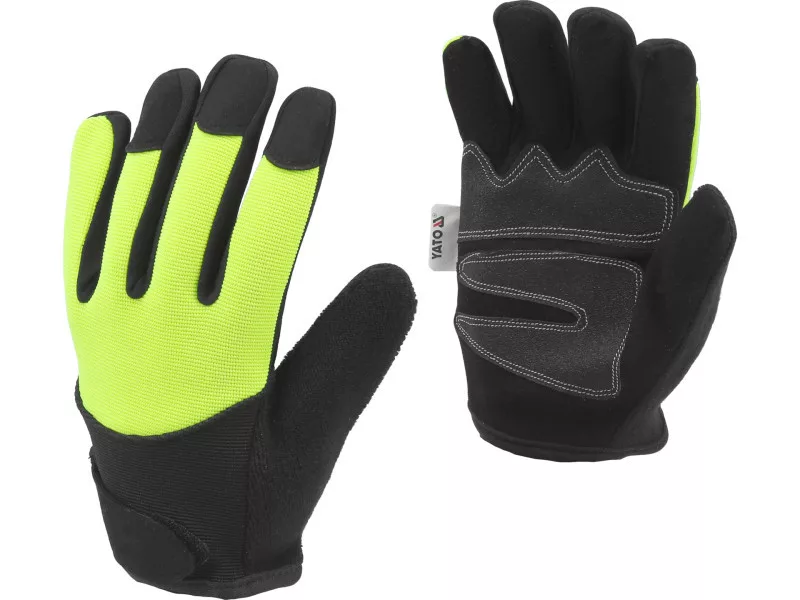 Working gloves for mechanical and general construction works. Made of amara synthetic leather and cotton fabric. Special material allows you to operate touch screens of a smartphone or tablet device. On the thumb fabric type for rubbing sweat. Additional reinforcements in places most exposed to abrasions significantly prolong their service life and protect against the formation of prints. Catching part: synthetic leather amara outer part: cotton reinforcement fabric in the gripping part at the base of the fingers of reinforcement in the grip part of the hand on the thumb additional material type terry, e.g. for rubbing sweat from the forehead with the cuff with a Velcro Velcro fastener. : The glove design allows you to operate the screen with your fingertip, the operation itself requires a slightly stronger pressure and a few moments to feel. In order for the gloves to perform this function well: choose the right size, the glove must adhere well to the hand after putting on the glove, gently stretch and fasten the cuff