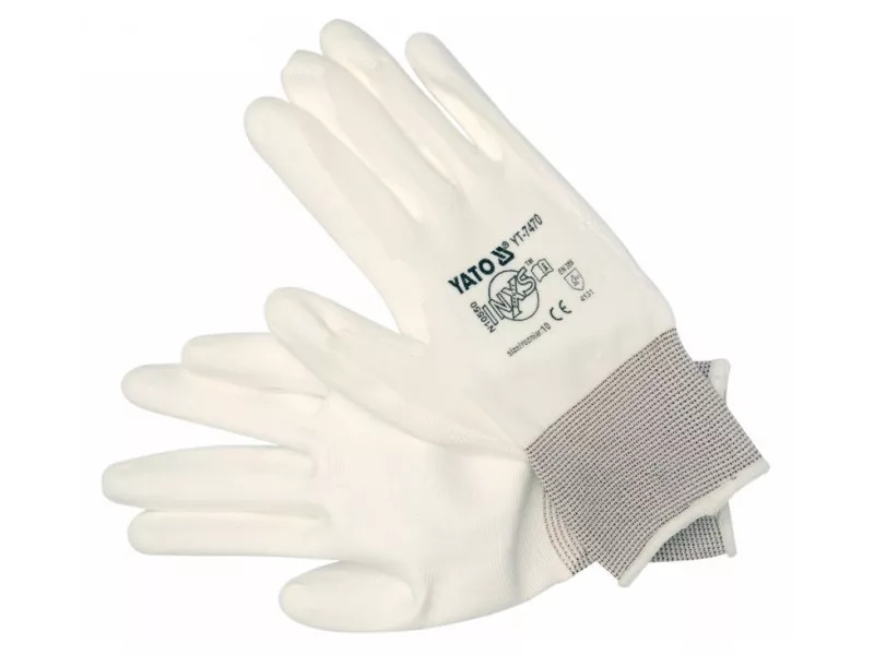 Protective work gloves made of white nylon, coated in the grip part with white polyurethane. Thicker than usual coating layer and high quality polyurethane provide the highest abrasion resistance according to EN 388. Seamless construction of high-quality nylon means increased tear resistance and retention of flexibility for a longer period of time. The fine 15G stitch, or 15 stitches per inch, means lower weight and even better adhesion to the hand.