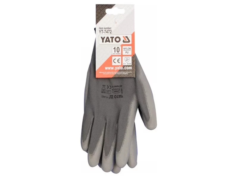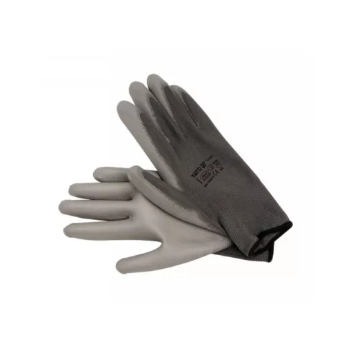 Protective work gloves made of gray polyester, coated in the grip part with gray polyurethane. The thickness of the coating provides almost the highest abrasion resistance according to EN 388. Seamless construction with high quality polyester guarantees increased tear resistance.